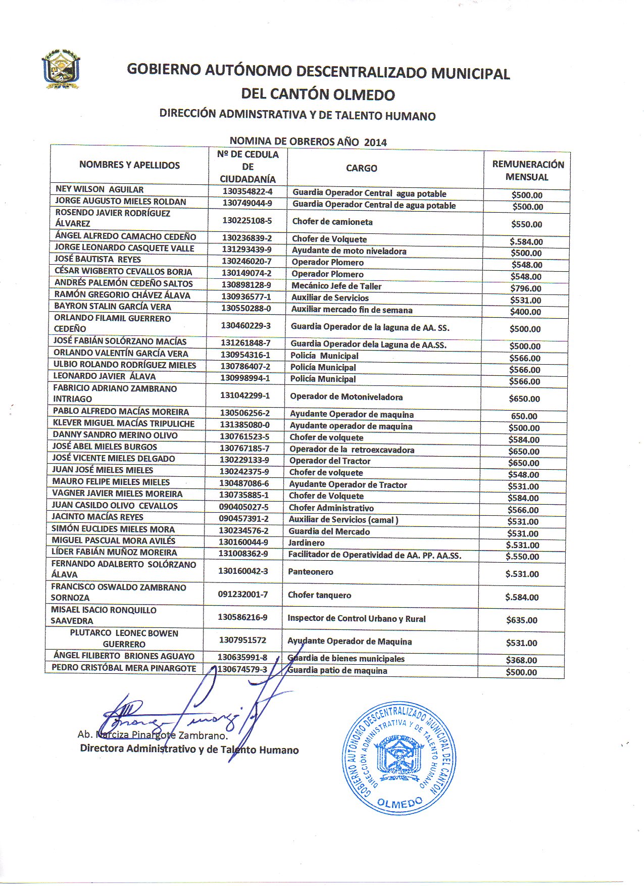 La remuneración mensual por puesto y todo ingreso adicional, incluso el sistema de compensación, según lo establezcan las disposiciones correspondientes. No es necesario incluir el nombre de los funcionarios